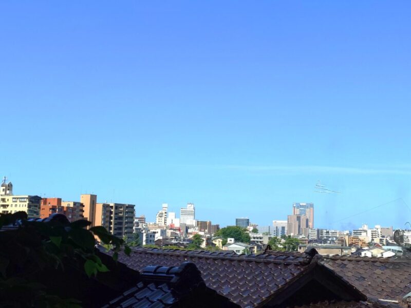 今日も良く晴れた一日、卯辰山の中腹から見下すと、北陸特有の黒い瓦がきらきら光って、まるで小さき波のように見えます。