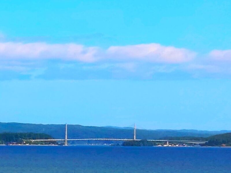 一枚目の写真は、能登半島地震でしばらく通行止めとなっていた「ツインブリッジのと」(中能登農道橋)、応急復旧工事が完了し、今年の6月16日から暫定供用が開始されております。