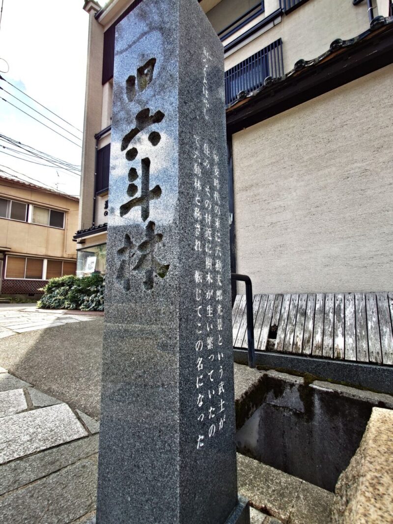 二枚目の写真が「旧六斗林」の標柱で、この辺りは住宅が密集していて、当時の面影は残っていませんでした。(ただ、近くには神社とお寺の境目のない「境内」が少し残っています)