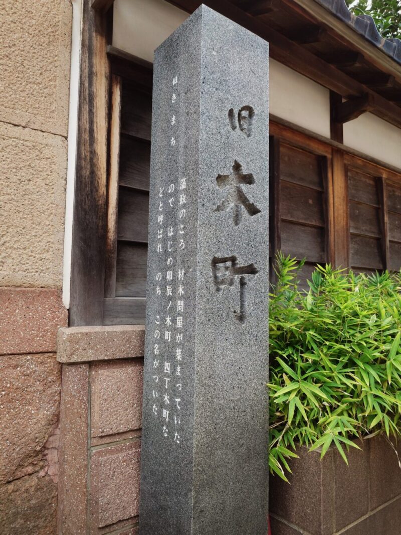 「御輪堂」の傍には「旧木町(きゅうきまち)」という標柱があり、説明書きには「藩政のころ材木問屋が集まっていたので はじめ「卯辰ノ木町」「四丁木町」などと呼ばれ のち この名がついた」と記されています。