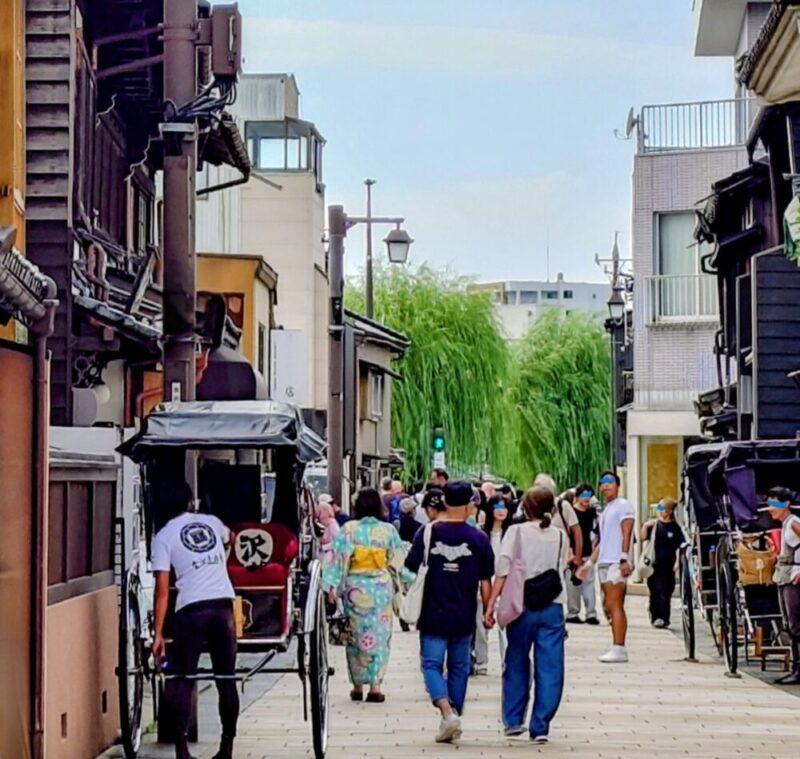 ひがし茶屋街に「人力車」の待機場所があり、利用される観光客も多いと聞きます。今年7月にはフランス人の「俥人」がデビューしたとのニュースが流れました。