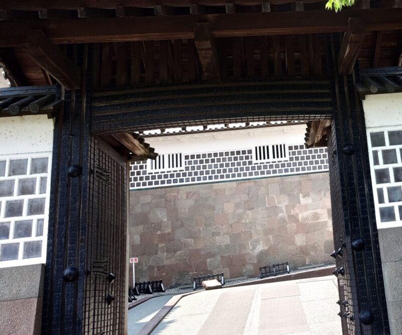 金沢城石川門正面の石垣は、その色合いをうまく組み合わせ、他の城に類を見ないほど綺麗な門石垣に感動する。