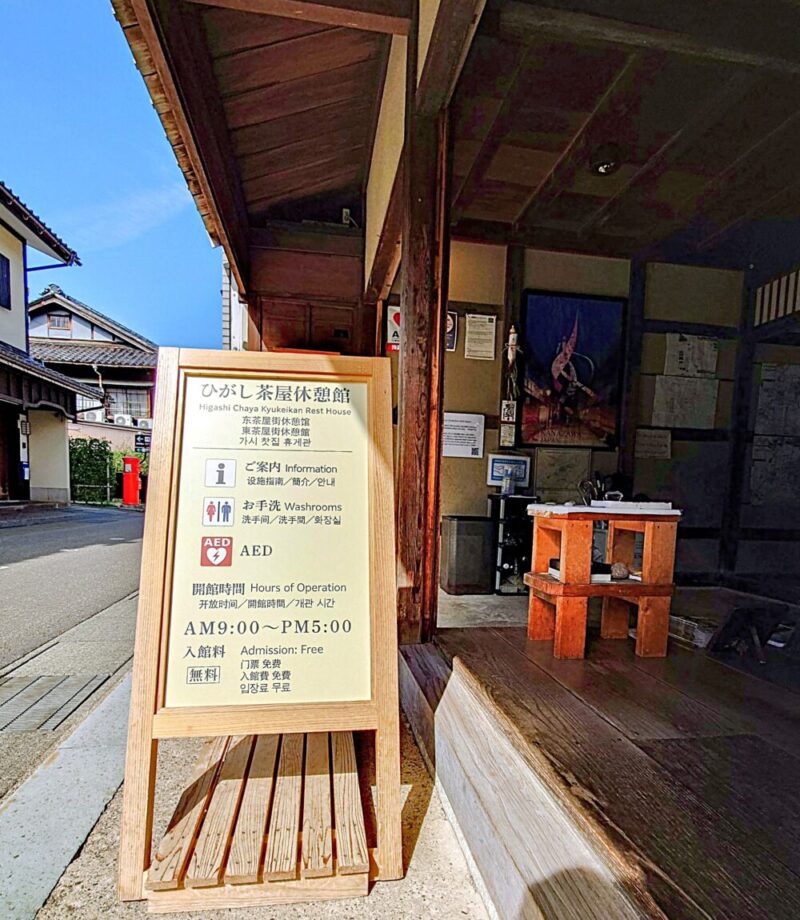 ちなみに、「ひがし茶屋休憩館」は、午前9時~午後5時(冬期間は午前9時半~午後5時)開館しており、常駐する観光ボランティアガイド「まいどさん」に周辺を同行案内・解説(無料)依頼をすることが出来ます。(年中無休)