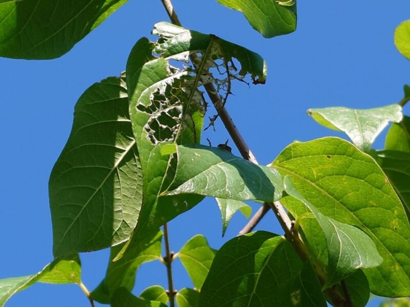 【 虫食いの 木の葉眺むる 秋日和 】(むしくいの このはながむる あきびより)