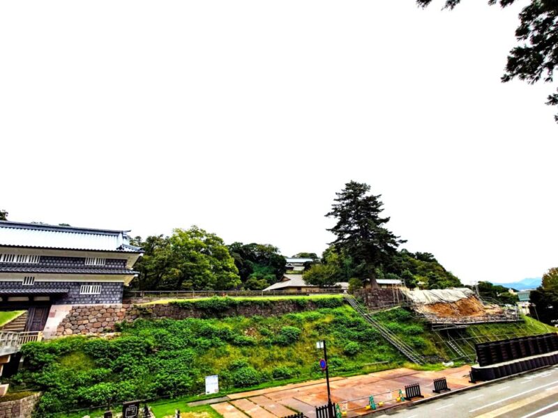 「石川県金沢城調査研究所」発行のパンフレットを頼りに山を登ると、空気が澄んでいて少し肌寒く、腕まくりしていた長袖シャツの袖を戻しました。