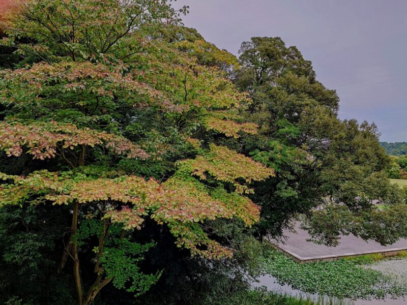 兼六園全体の「紅葉」度合はまだまだの感がありますが、所々に薄く色付き始めた樹木も散見されます。