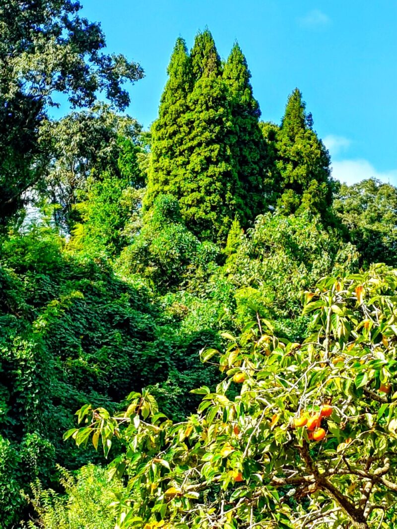 空の青さと、実った果実があちこちに見られ、熊でなくとも食欲をそそります。