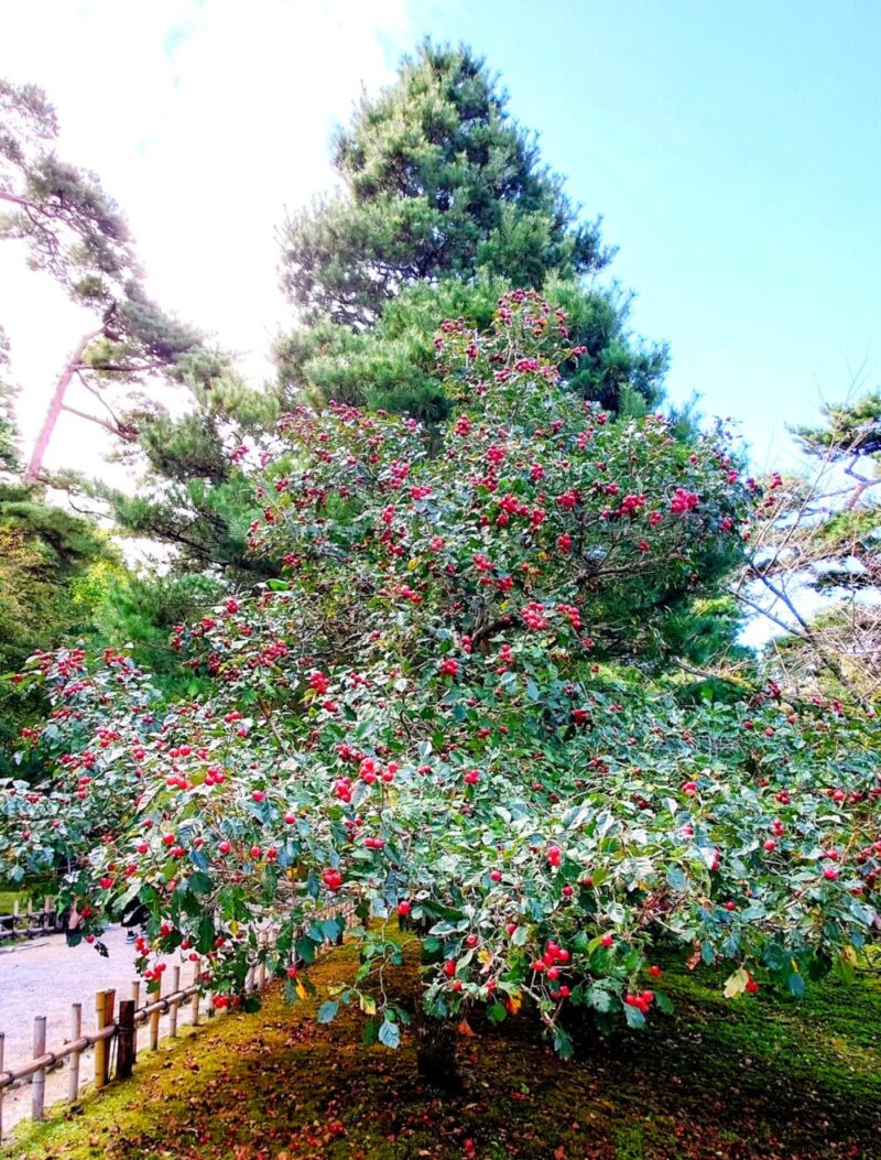 久しぶりに友人と訪ねた兼六園、ひと回りして桂坂口の出口に向かうと「山査子」の実が赤く実っていて、その木の下にも沢山落ちていました。