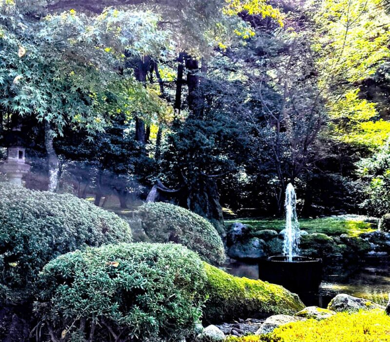 この噴水は文久元年(1861年)に造られた「日本で最古の噴水」で、園内にある「霞ケ池」の水面との高低差を利用した水圧で吹き上がっているとのこと。