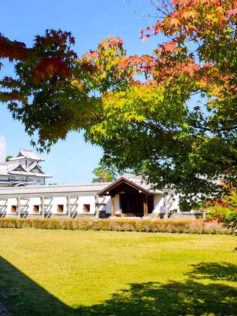 金沢城内の紅葉が見頃となって来ました。「鉄砲」を撃つ場所(穴)を「狭間=さま」と言い、城壁に三角や丸、四角の穴が空けられていて、弓矢や鉄砲により攻撃(防御)する場所が、敵方にも視認される造りになっている城が多い。