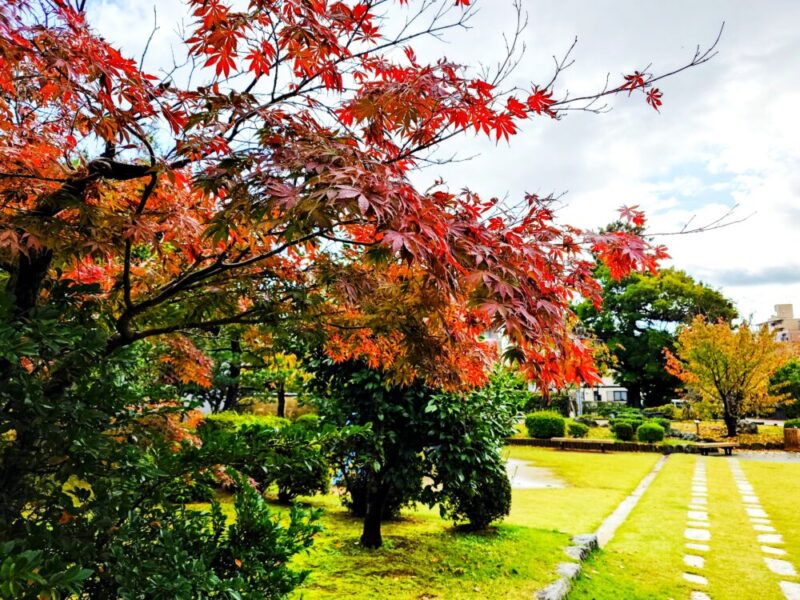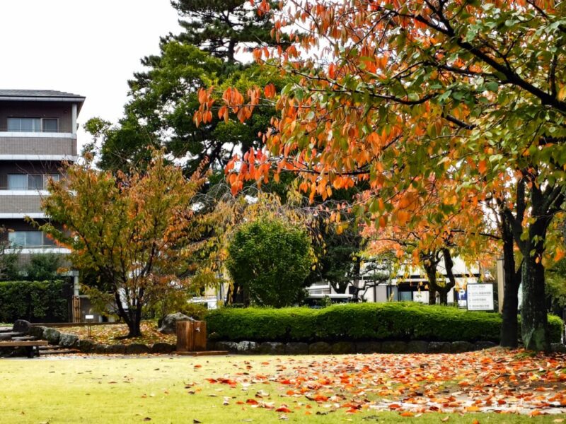 浅野川大橋からほど近い「東山河岸緑地公園」にある「イロハモミジ」などが、色鮮やかに秋の季節を演出してくれています。