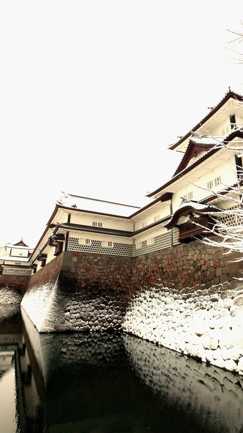 金沢城の近辺には「尾山神社」「尾崎神社」「石浦神社」「金沢神社」等、沢山のお社があり、特に三ケ日は「初詣」の行き帰り人が多く利用する内堀脇道でもあります。
