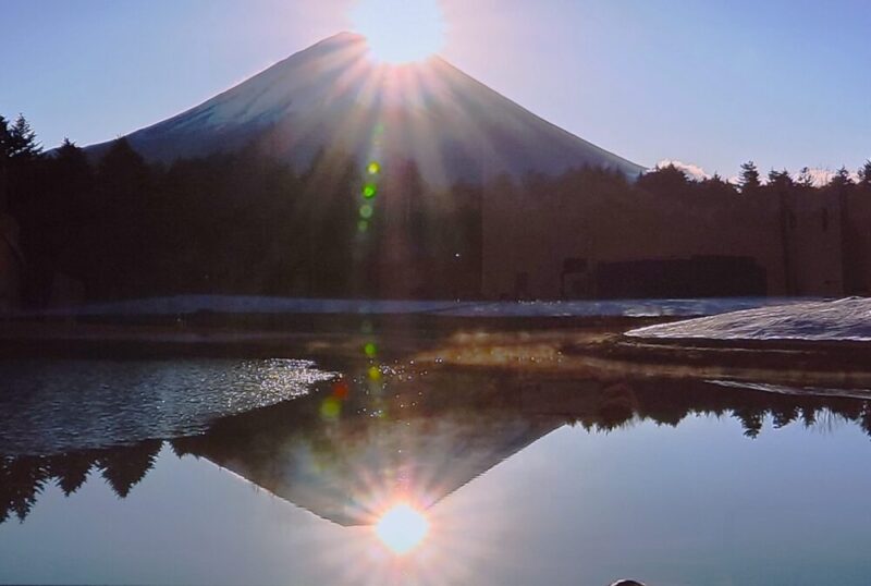 おせち料理を頂きながらTVを見ていると、某モーニングショーで「ダブルダイヤモンド富士」を写し出す映像・中継があり、「TV前の皆さんカメラ撮影をどうぞ・・・字幕や時間表示を外しますから・・・」と司会者が促します。