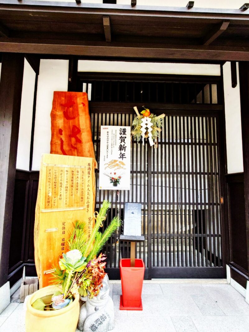この通りに至る少し手前の一角(写真)に12月26日頃からお店の玄関に飾られて・・・。多くの観光客が行き交う路に加賀百万石城下町の「新年の迎え方」の一端を紹介して頂いているような「粋な計らい」・・・。