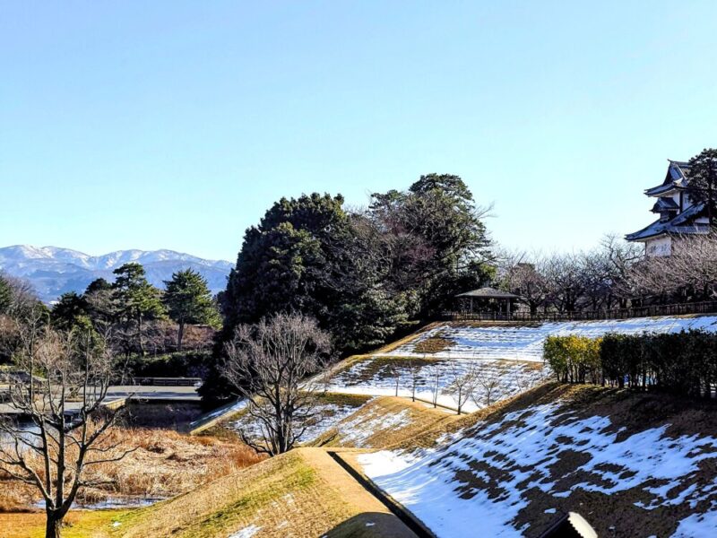 ※2「写真」: 金沢城新丸広場から雪の山並みを望む