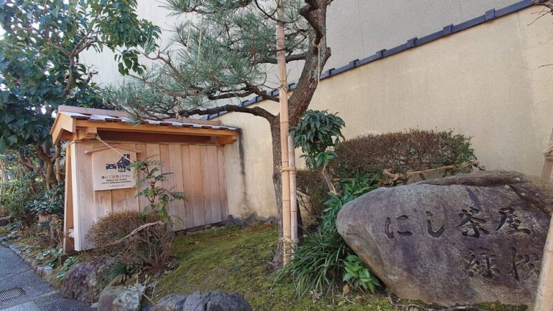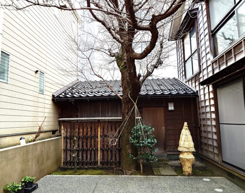 西茶屋街の一角に「雪囲い」を施した灯籠があります。ここ数日は暖かい日が続き、また春一番もかなり前に吹いたとのことです。