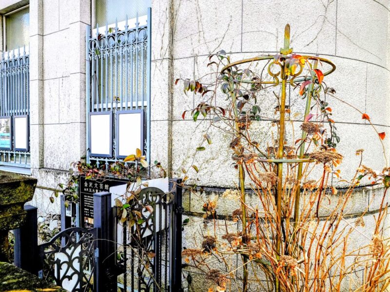 ※5「写真」: 「金沢文芸館」と「冬枯れの紫陽花」風景
