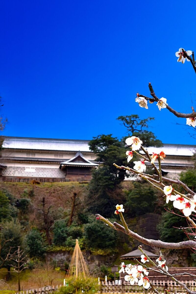 加賀藩前田家の家紋「剣梅鉢」にも使用されている「梅」、借景としての城壁を含めて金沢城のあちこちで観ることが出来ます。