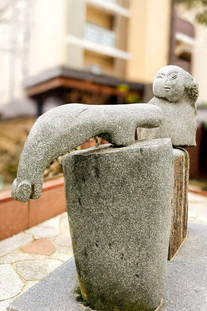 ※2「(彫刻)像(写真)」: 作品名「浄=きょ」作者:「矩 幸也(かねこうせい)氏」髪を整える女性の姿をモチーフにしたブロンズ像(武蔵辻地下道竣工記念:1977年)