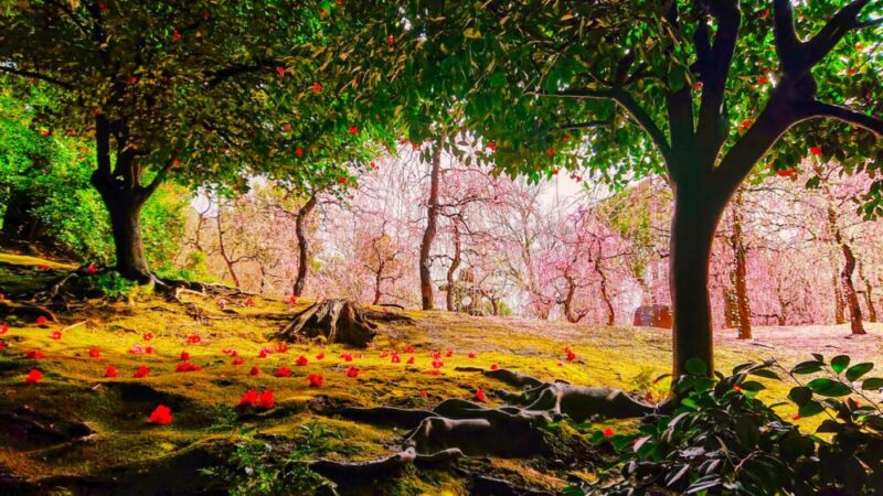 2021年の3月5日に詣でた際、「しだれ梅と椿まつり」が開催期間中で神苑内のお庭をゆっくりと見て回りました。