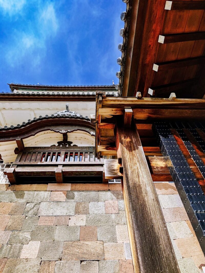 重厚な筋金入りの御門ですが、ふと石垣に目を移すと別の趣が感じられます。