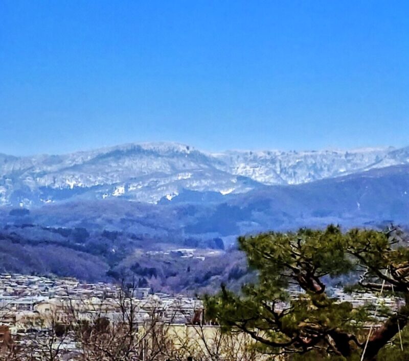 毎年春先に眺める山々の蒼と空の青・・今年はまた格別の趣を感じます。特に降雪量が多かった山の雪も徐々に解けだして、やがては「山笑う」の季節に・・・。