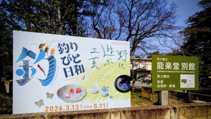 石川県立能楽堂別館に「釣りびと日和」と書かれた看板があったので、入館(無料)しました。