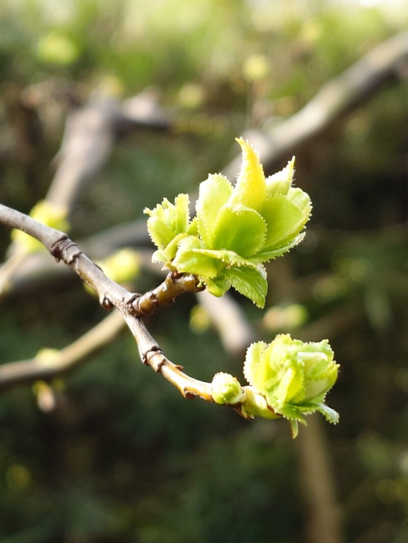 今回は、園内に咲く「椿」をテーマとしての「ゆっくり散歩」でしたが、その他の木々の芽吹きも盛んで、被写体を絞るのにも目移りがします。